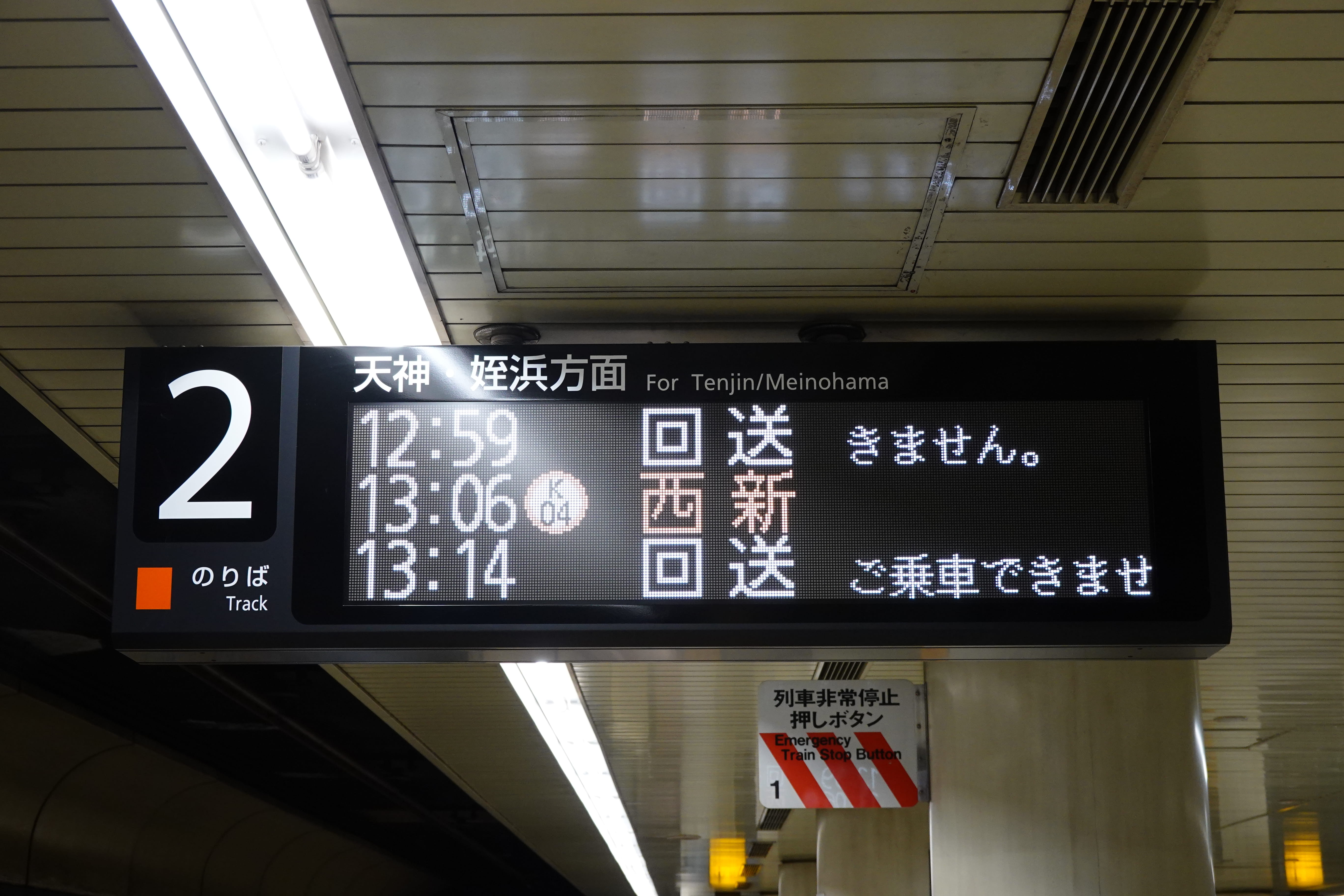当駅には詳細型放送が導入されています。他駅同様にJR筑肥線や西鉄貝塚線への接続案内や最終列車の予告案内が入るほか、当駅始発の列車では停車時間案内も流れる場合があります。途中駅と福岡空港駅を合わせたような放送形態です。2023年の七隈線開業前後で到着放送の言い回しが丁寧なものに更新されました。